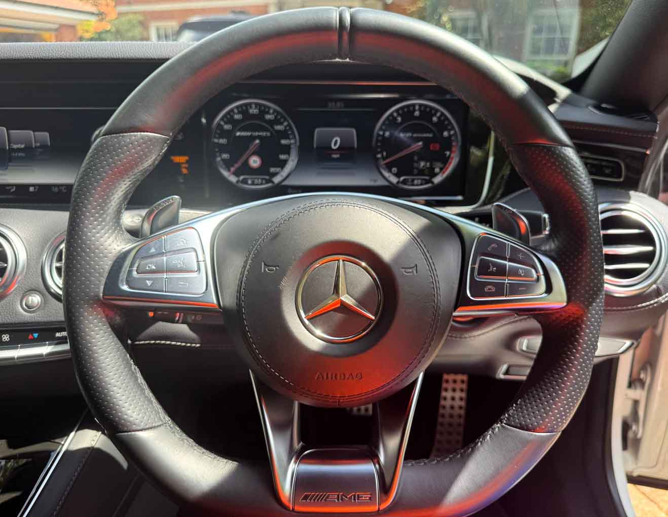 A stunning example of high-performance luxury, this 2016 Mercedes-Benz S63 AMG Coupé blends brute V8 power with bespoke design and advanced comfort. Fitted with an exclusive Nappa leather interior and packed with nearly every available factory option, this is a scarce and refined vehicle for the most discerning driver.